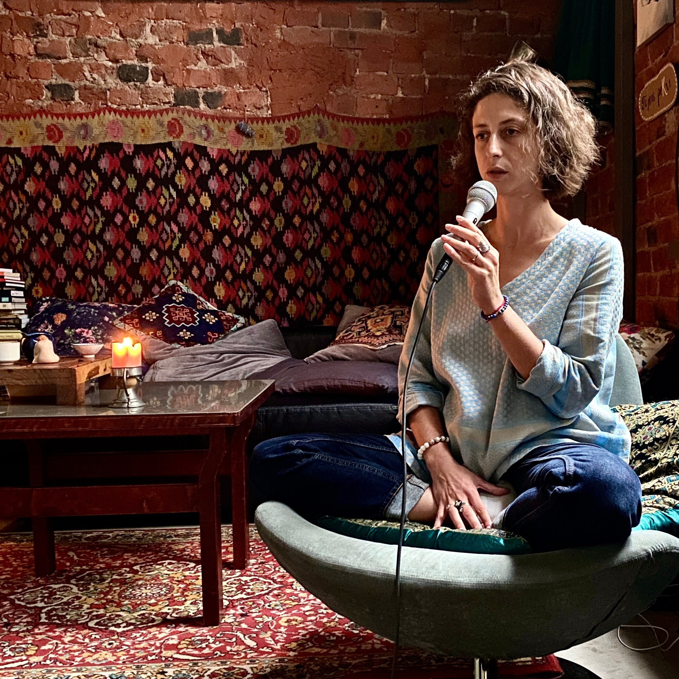 У каждого есть право на голос. Для голосовой практики у меня в студии не обязательно быть музыкантом. Я создаю безопасное пространство для импровизации. Голос и виолончель звучат вместе. Звук помогает раскрыться, снять телесное напряжение и найти внутреннюю опору.